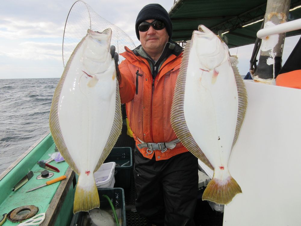 本日午前便での釣果・・・68cm頭に船中37枚、竿頭11枚、その他リリース数枚でした。
