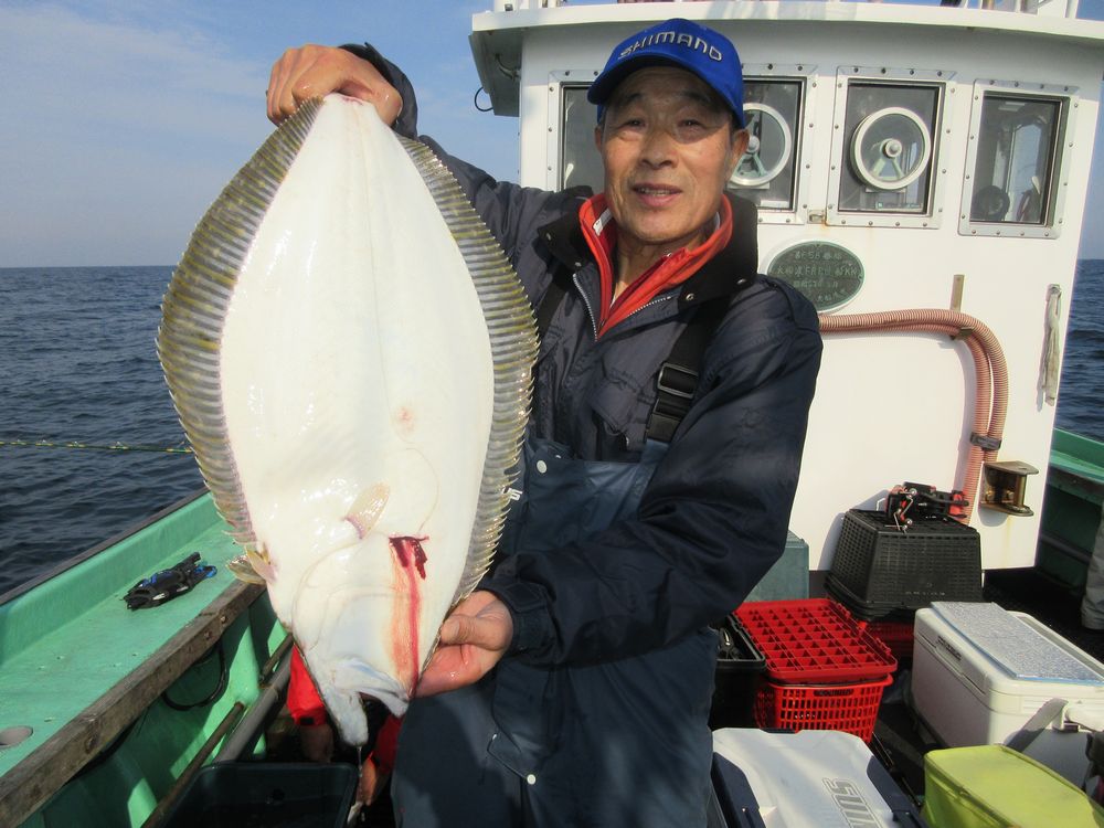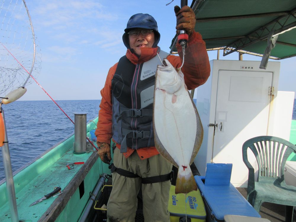 本日午前便での釣果・・・68cm頭に船中49枚、竿頭14枚、その他リリースに数枚でした。