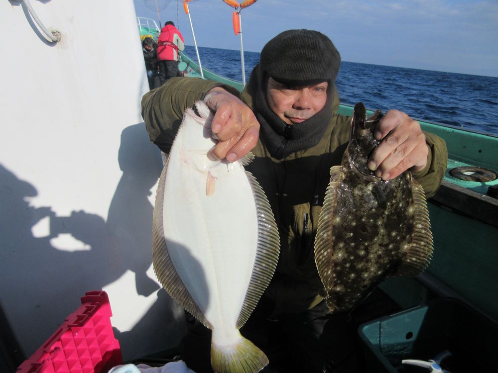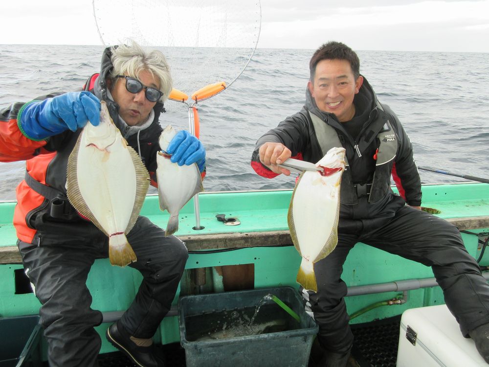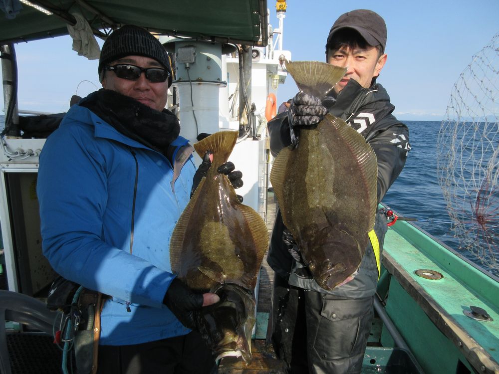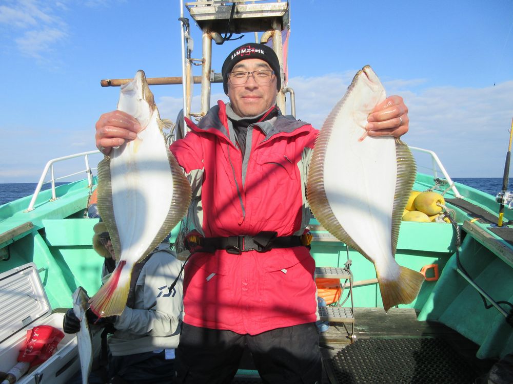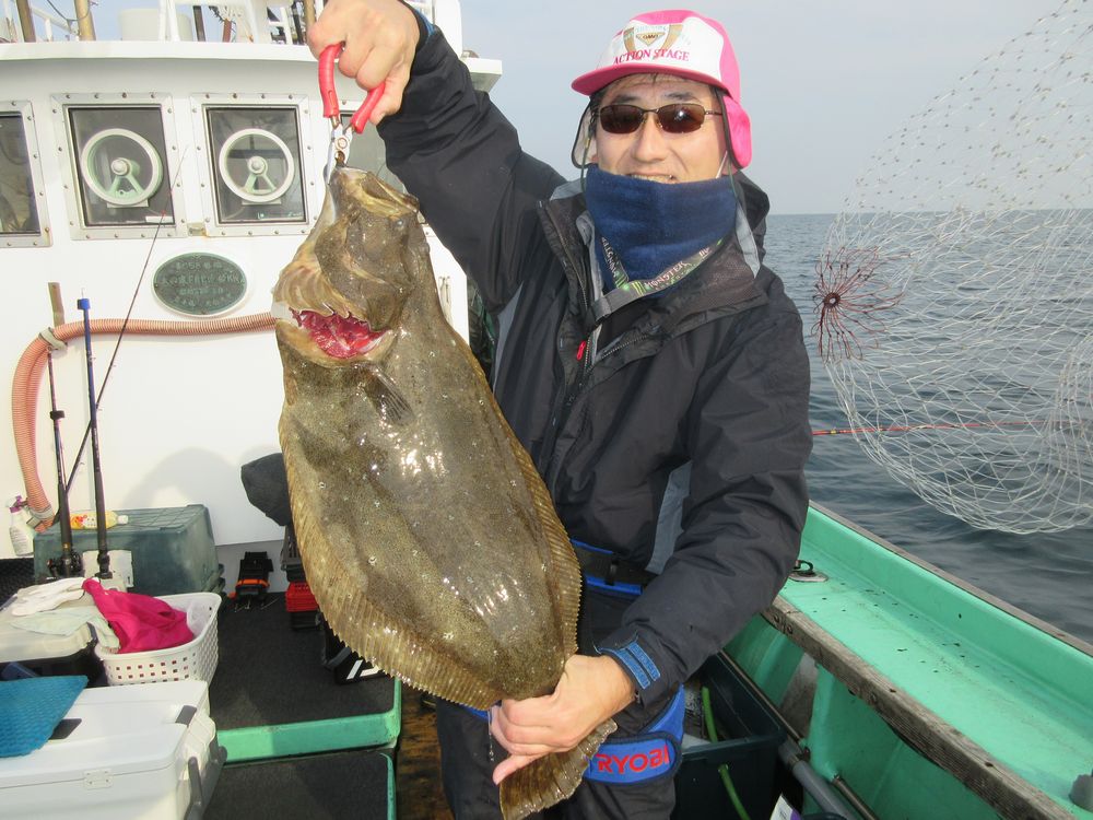 本日の釣果72cm頭に船中99枚、竿頭23枚、その他リリースに30枚位、外道に宗八カレイ・ミズクサカレイ数枚でした。