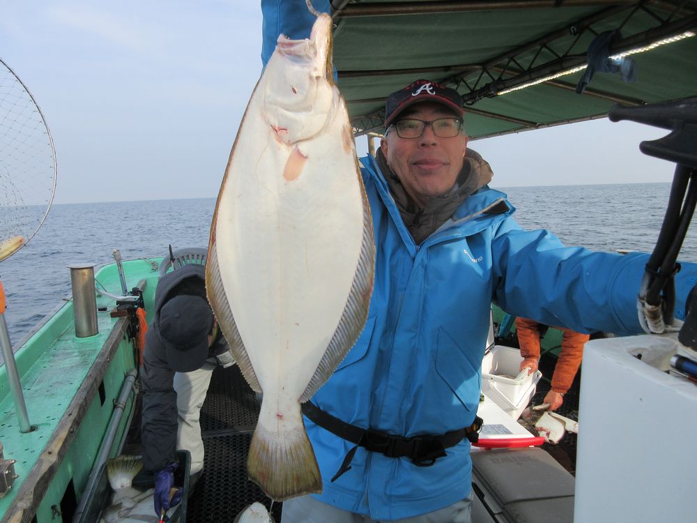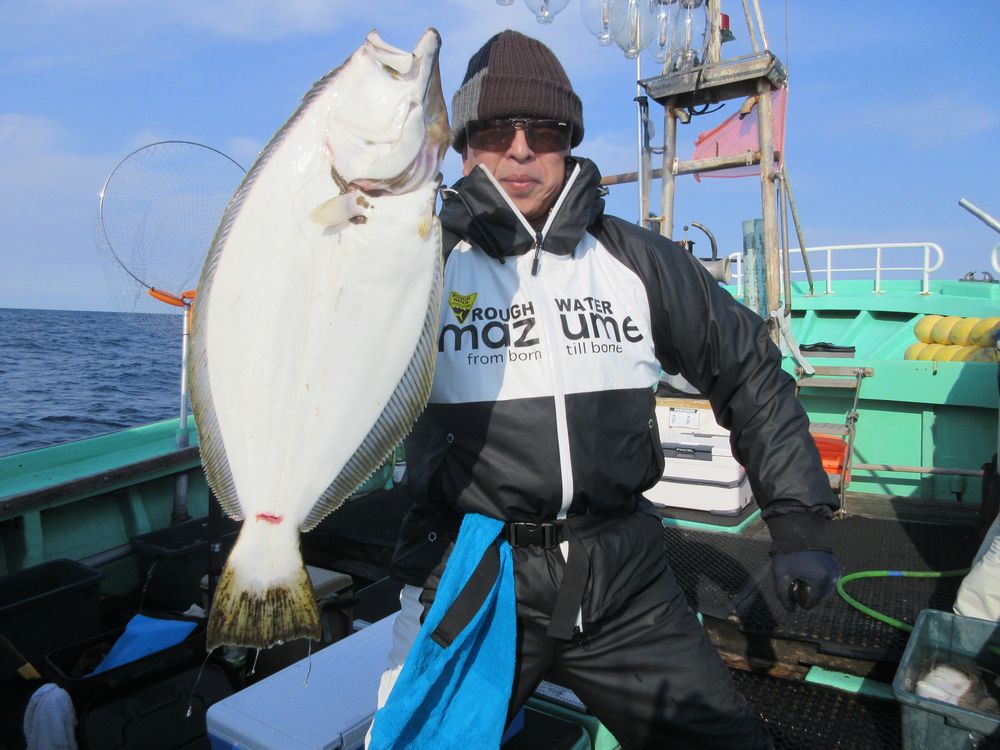 本日午前便での釣果・・・66cm頭に船中74枚、竿頭20枚、その他リリースに20枚位でした。